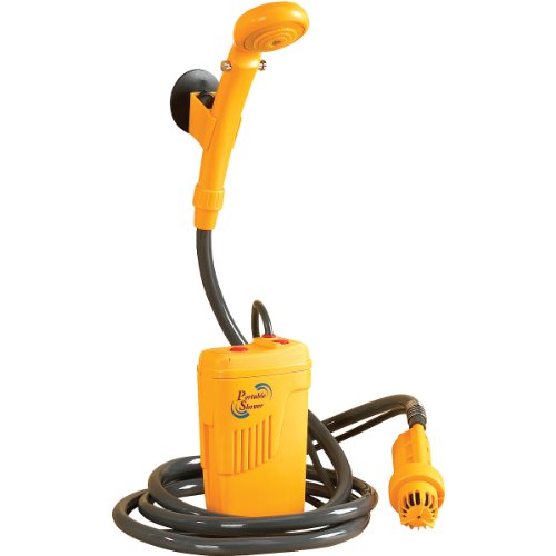 Clean up your act with the portable battery-powered shower from Stansport®. It features adjustable water pressure, and 7' of tubing offers a longer reach. A carry bag is included for storage.